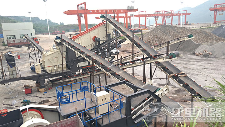 半移动式破碎站也称车载移动式破碎机,是以牵引车为行走动力的碎石机器,能为公司创造较高的经济和社会盈利。时产百吨移动破碎站在各个行业的需求较大,满足产量要求的设备型号主要有HX938HD86、HX1149HD98、HX938F1210、HX938F1214,市场售价大概在50-100万,因型号差异,价格会有不同,详细介绍请看下文。